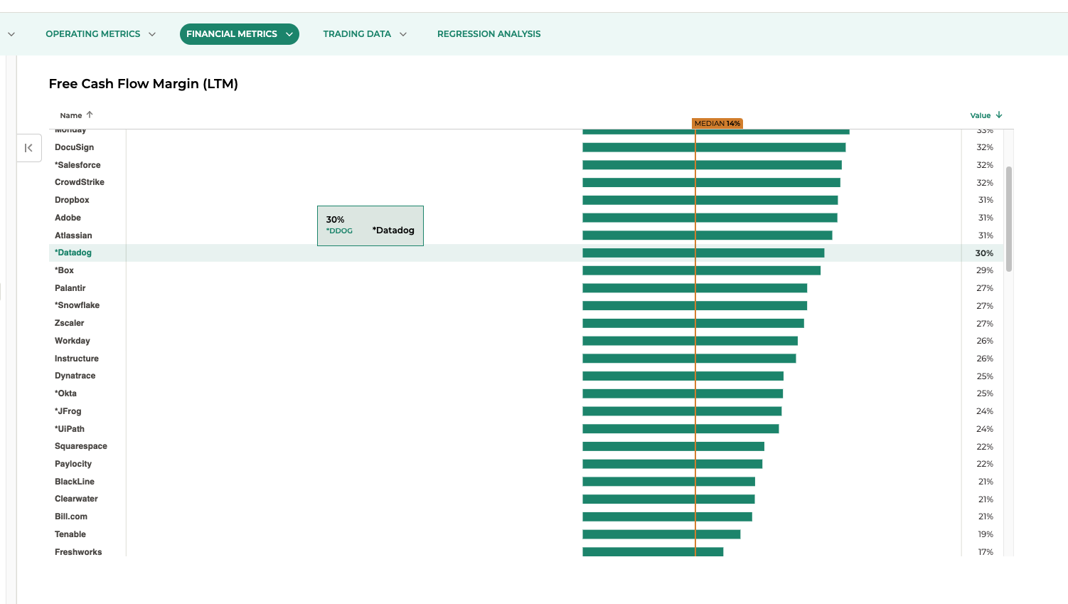 For example: I work at Honeycomb.io (which I highly recommend and we’re hiring!!). Given that we are an observability tooling company, I look at Datadog’s information as a possible proxy rather than, say, Shopify’s.